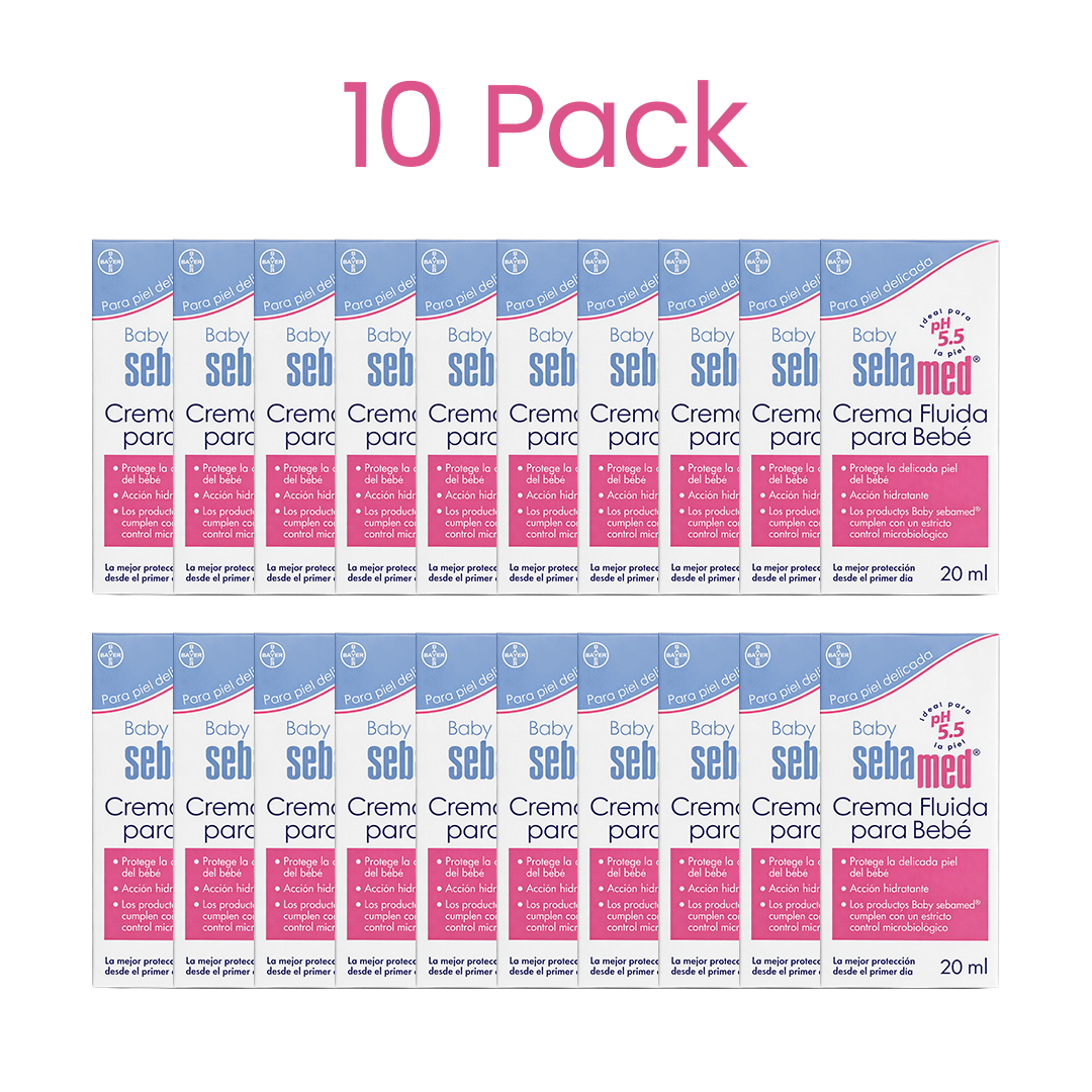 Baby Sebamed Crema Fluida para Bebé es una crema de uso diario diseñada para cuidar y proteger la piel delicada del bebé, manteniéndola suave, hidratada y confortable. Esta presentación corresponde a un paquete con 10 cajitas individuales de 20 ml cada una, lo que da un contenido total de 200 ml.